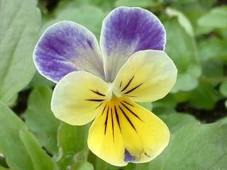 Johnny Jump-Up - Viola cornuta - Small, compact flowering plants that grow to about 8 inches in height. Bright purple flowers with white and yellow patches. These little delights were originally found in the mountainous regions of France and Spain. One of the favorites of the wildflower family this perennial can live for many years, creating a wider clump of foliage each year.