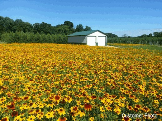 How Much Seed Do I Need? In planning a wildflower meadow or garden, first you need to choose your site and estimate the square footage of the area. To find the square footage of any square or rectangular area, simply multiply the length in feet times the width in feet. For example, a border 50 feet long and 10 feet wide is 500 sq. ft. in area (50 X 10 = 500). For a circle, the area is equal to “pi” r squared, or pi (3.1) times the radius of your circle, squared. If your circle is 20 feet across, its radius is half of that or 10 ft. So, to get the square footage of the circle: 3.1 X 10 X 10 = 310 sq. ft. The amount of seed you should plant depends on the flower display you want. Most usually want dense or maximum bloom. All mixtures are pure wildflower seed, no fillers or grasses. The denser you sow your wildflower area with seed, the more you will hold out the weeds and grasses. Just be sure not to over seed, so your wildflowers do not compete with themselves for space!