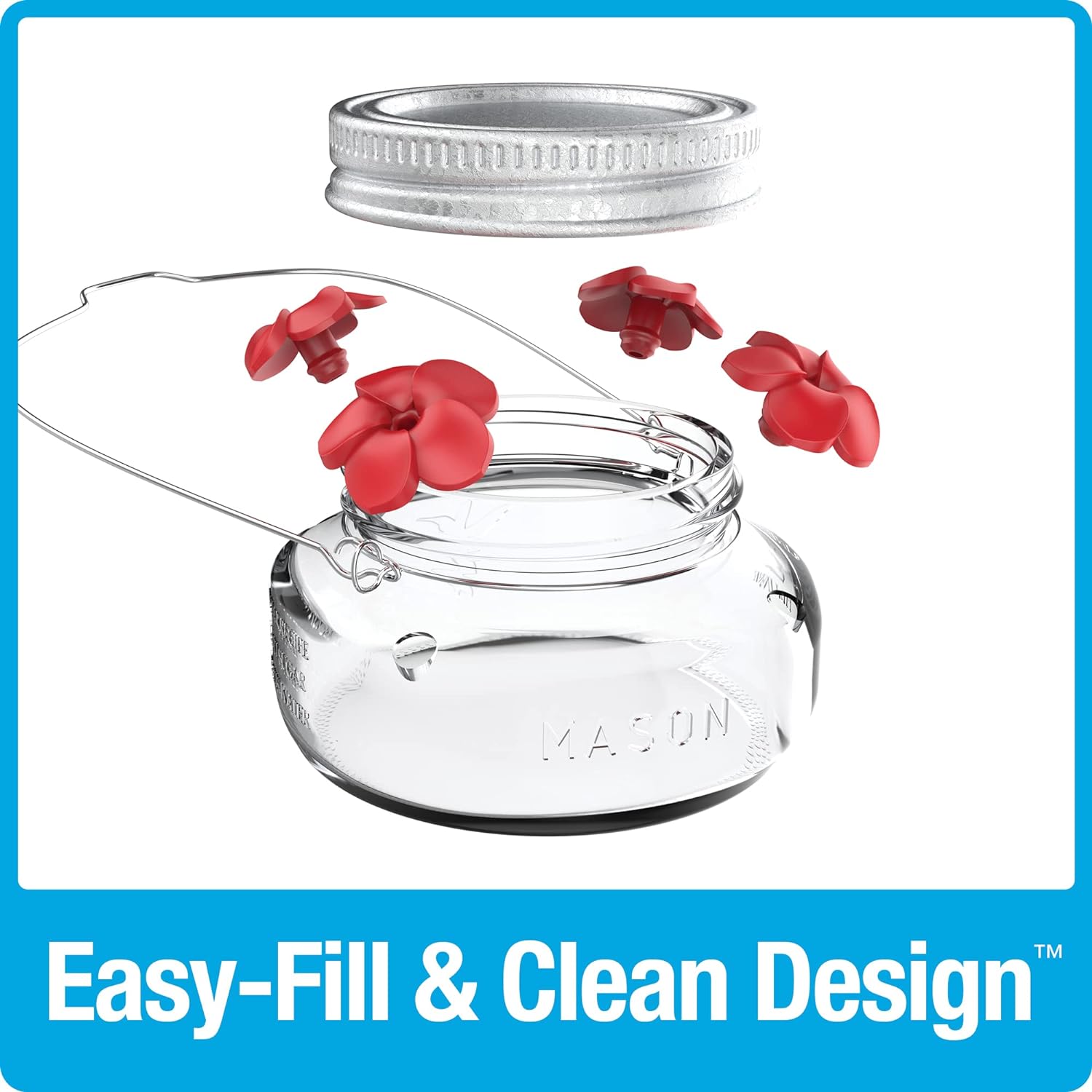 Nature's Way Mason Jar Hummingbird Feeder. This unique design creates an easy-to-use hummingbird feeder combined with a one-of-a-kind look that will be a favorite for both you and the hummingbirds! Small footprint allows this to go anywhere in your yard! Four feeding ports attract multiple hummingbirds. A wide opening enables easier filling and cleaning. Leak-free flowers are also easily removed. Top-rack dishwasher safe! 4 x 5 x 6 inches. We absolutely love these and you will too!