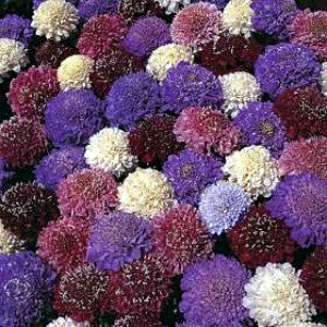 Pincushion Flower Mix - Scabiosa atropurpurea - Pincushion flowers are a charming, traditional cottage garden flower. They like full sun and good drainage. Great mixed in with low growing wildflowers like verbena, veronicas and more.