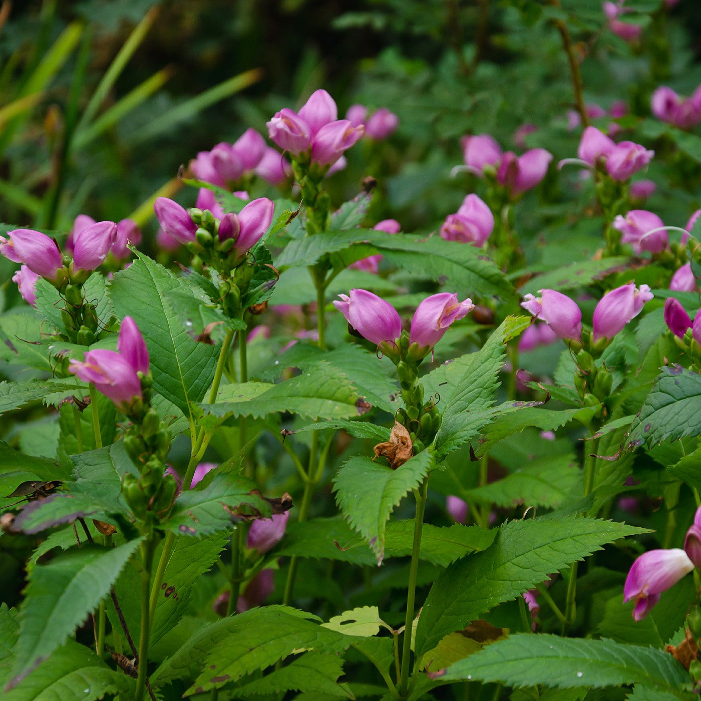 TURTLEHEAD PINK – Chelone obliqua (Seeds per Packet: 100+) This beautiful and unique native wildflower is a deep rosy pink with a long bloom time and attracts pollinators such as bees and the occasional hummingbird. This stunning and visually interesting wildflower is one of our favorites. Turtleheads are native wildflowers and excellent around water features. Native, mid-summer blooms through early fall.