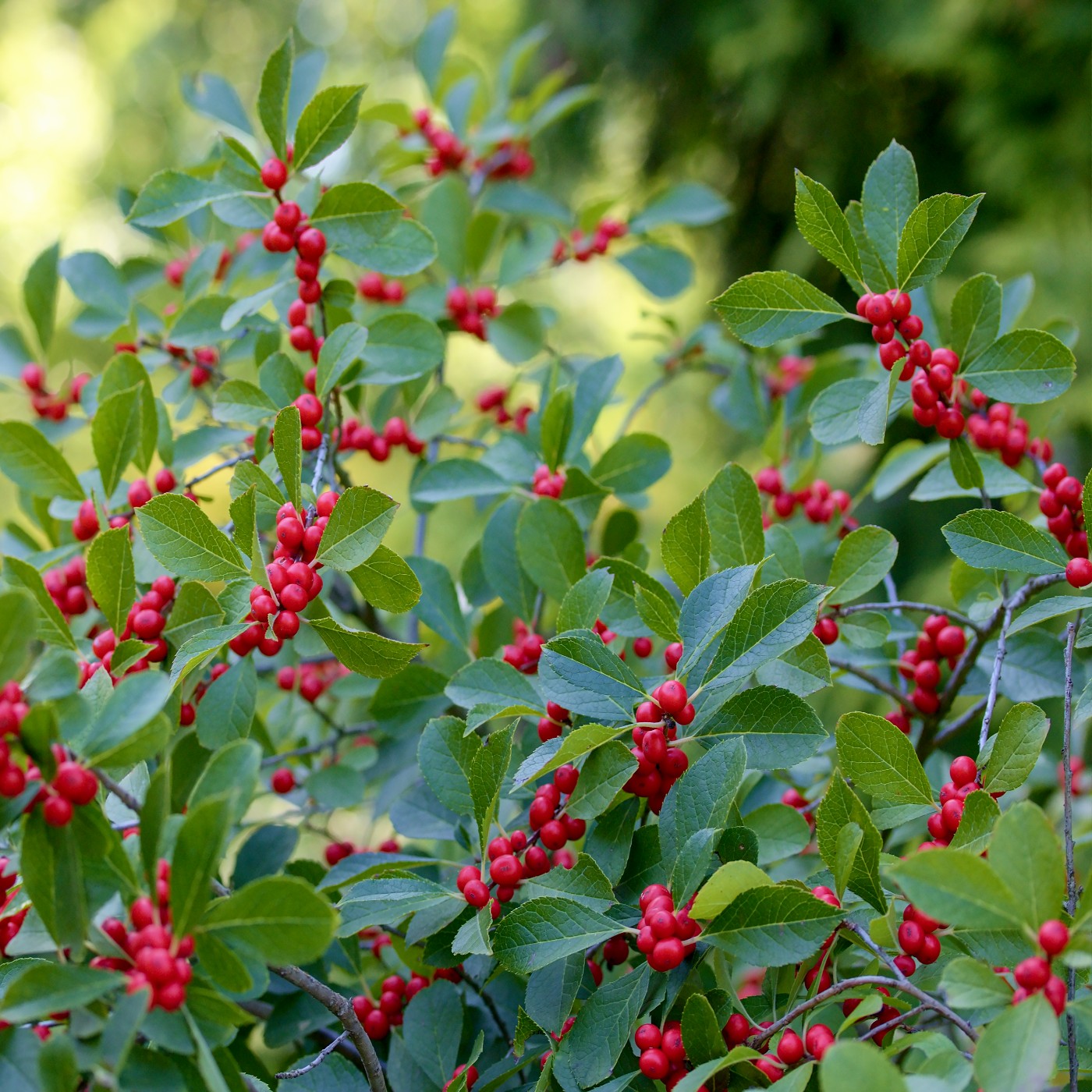 WINTERBERRY - Ilex verticillata (Seeds per Packet: 50+) Common winterberry is not like other hollies and it is not an evergreen. It has purplish green foliage turns black with the first frost. It produces non-showy flowers, that are followed by dense clusters of bright red berries that stay for the entire winter It is an upright, medium-sized shrub, typically 6-10 ft. tall popular due to its extremely showy bright red fruit. Attractive to birds. Grows in both wet and dry areas and is highly adaptable. Moist Woodlands, Swamps, Streams, Riverbanks, Near lakes or ponds, and more!